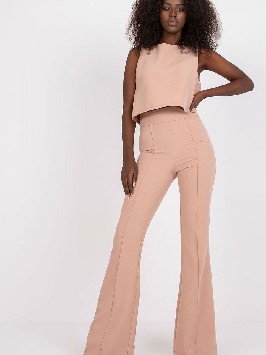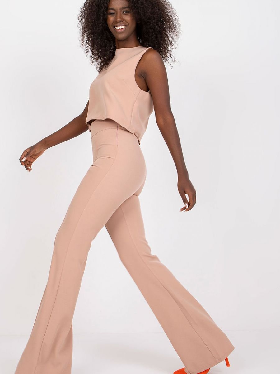 Elegant set consisting of a blouse and long pants. Short sleeveless blouse with a tie at the back. Long pants with high waist, fastened with a covered zip. A perfect set for many occasions.