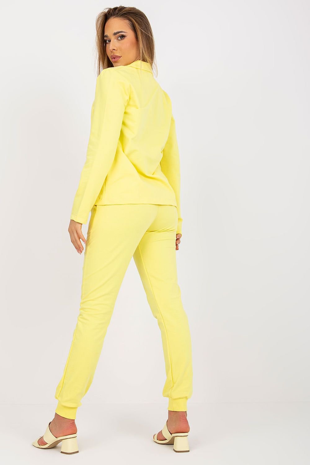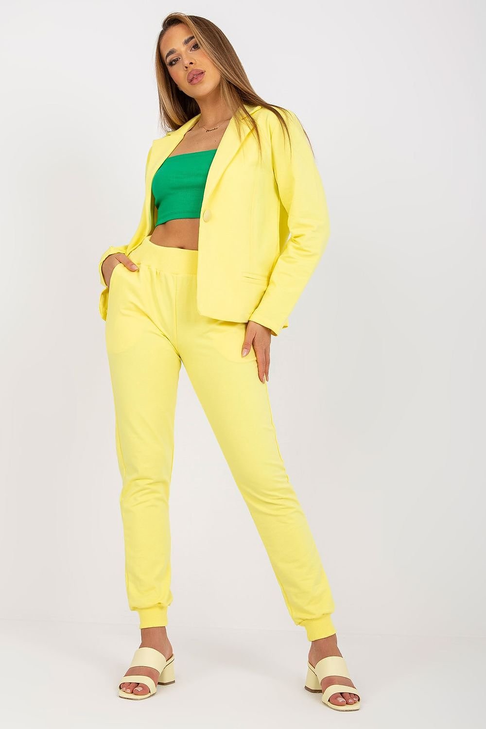 Women's sports set consisting of a jacket and long pants. Jacket of sporty cut buttoned. Pants with a wide elastic waistband, slip pockets on the sides. The set will prove useful on many occasions.