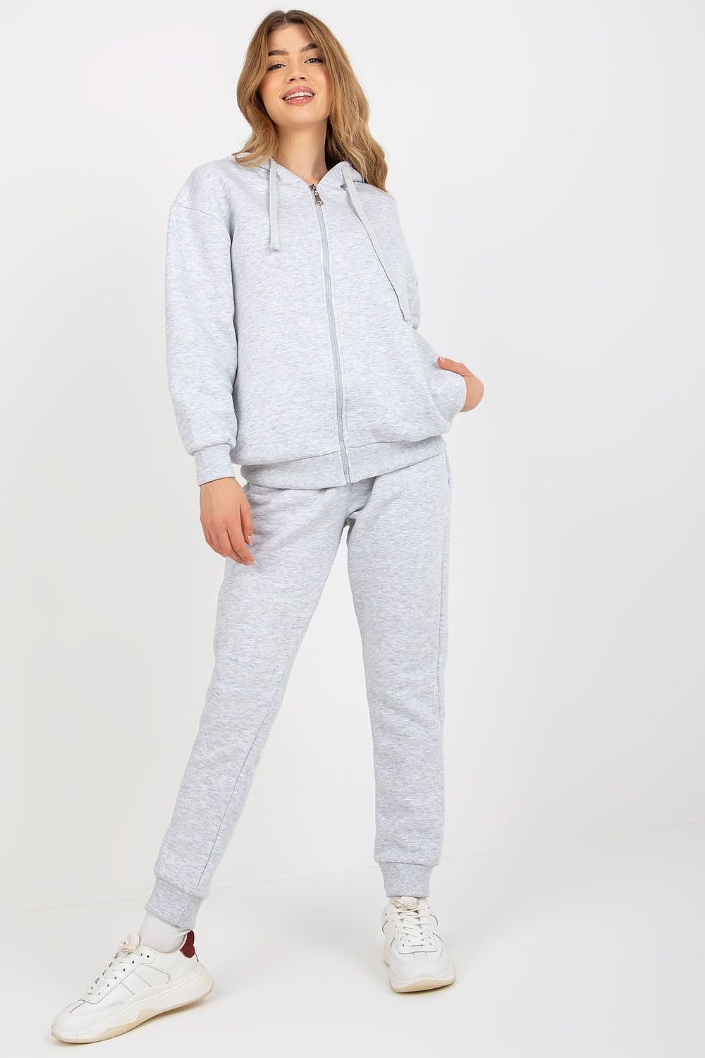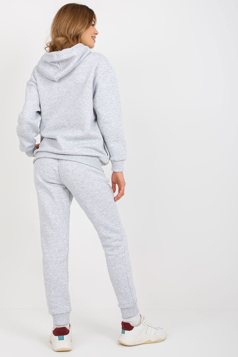 A sweatshirt set consisting of a sweatshirt and pants. Sweatshirt with long sleeves, hood and pockets. Long pants with waist tie and slip pockets.
