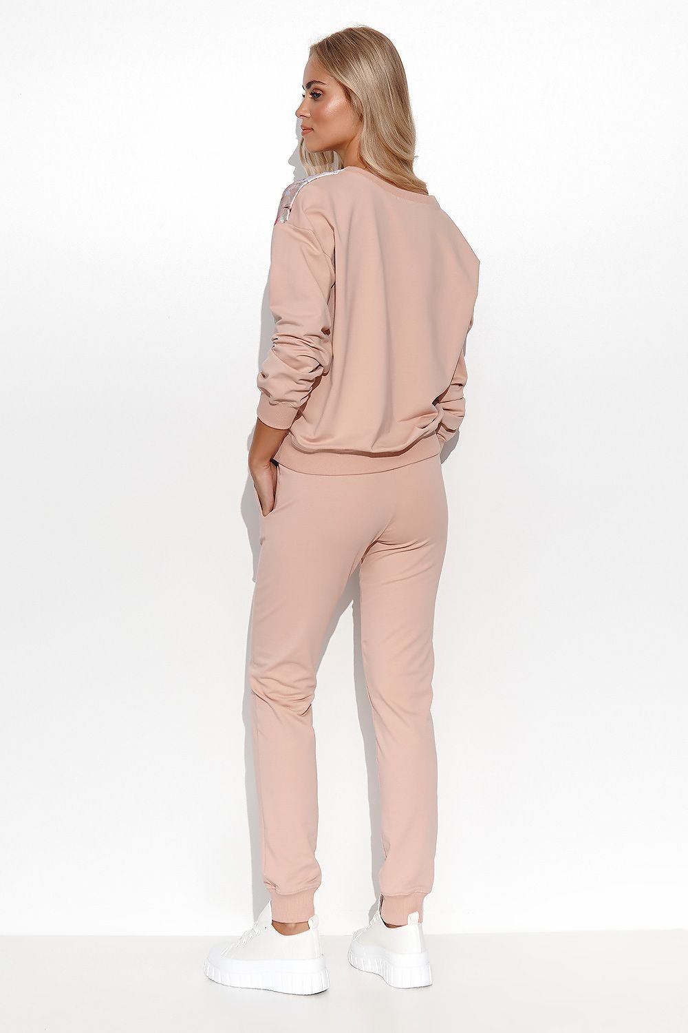 Women's tracksuit set with a charming romantic touch with satin elements. Classic unbuttoned women's sweatshirt tucked in over the head and feminine long-legged pants. The sweatshirt has a beautiful print on the front, which is available in different variations. There are practical welts sewn into the distal part of the sleeves and legs. The pants have practical side pockets. The elegant women's tracksuit set provides comfort and is perfect for wearing at work. Match it with sneakers or stilettos and feel comfortable in any circumstances.