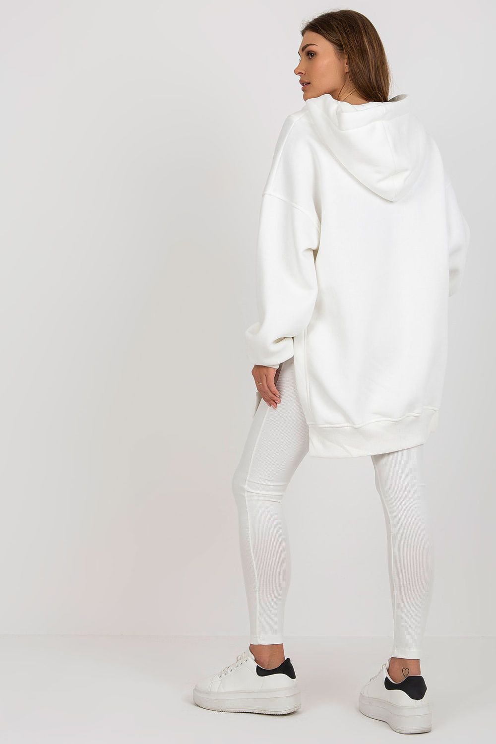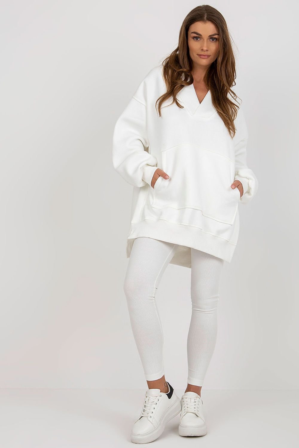 This extended sweatshirt and leggings create the perfect set of casual comfort and style. The long-sleeve sweatshirt with a V neckline is perfect for everyday wear. The high waistline of the leggings guarantees comfort, while the tapered legs add elegance. The kangaroo pocket on the front of the sweatshirt is a practical addition for colder days. In addition, the leggings are made of ribbed material, which gives them a unique character. This set is perfect for casual occasions, providing comfort and style in one.