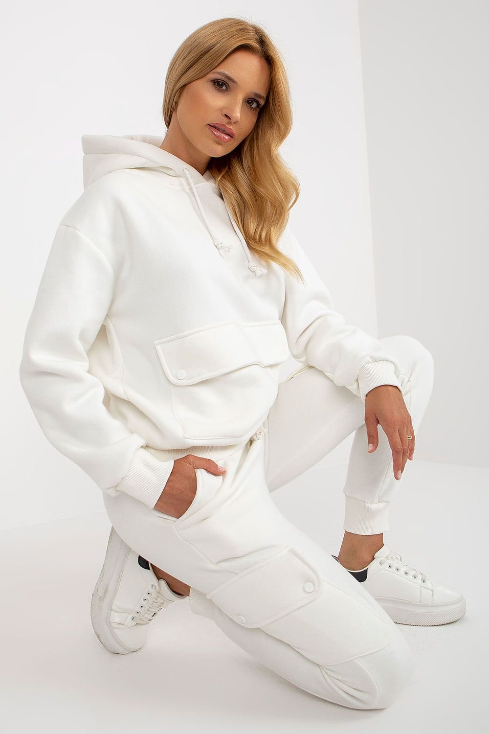 This set is an ideal choice for those who appreciate comfort and casual style. It consists of a sweatshirt and pants, creating a complete set for various occasions. Hooded sweatshirt with long sleeves is a great option for colder days. The hood adds a sporty touch, while the long sleeves provide warmth. On the front of the sweatshirt is a pocket with a flap, which gives it a bit of a military style. The cargo type long pants are not only comfortable, but also very practical. They have slip pockets that hold many small items, as well as thigh pockets that give them a distinctive look. In addition, the pants have a tie at the waist, which allows you to adjust them to your condition. This is a set that will work well for both everyday wear and outdoor activities.