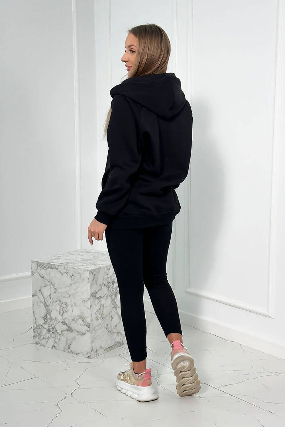 Black 3-piece set consisting of a sweatshirt, striped leggings and a top is the perfect outfit for women who appreciate fashionable and comfortable sports style. The long-sleeved sweatshirt with a hood will provide comfort and warmth on cold days, while adding character to the whole outfit. The top will emphasize the feminine silhouette, and the striped leggings can add a sporty touch and stand out in the crowd. Such a set will be great for everyday wear, and thanks to different color variants, every woman can match it to her taste and style.