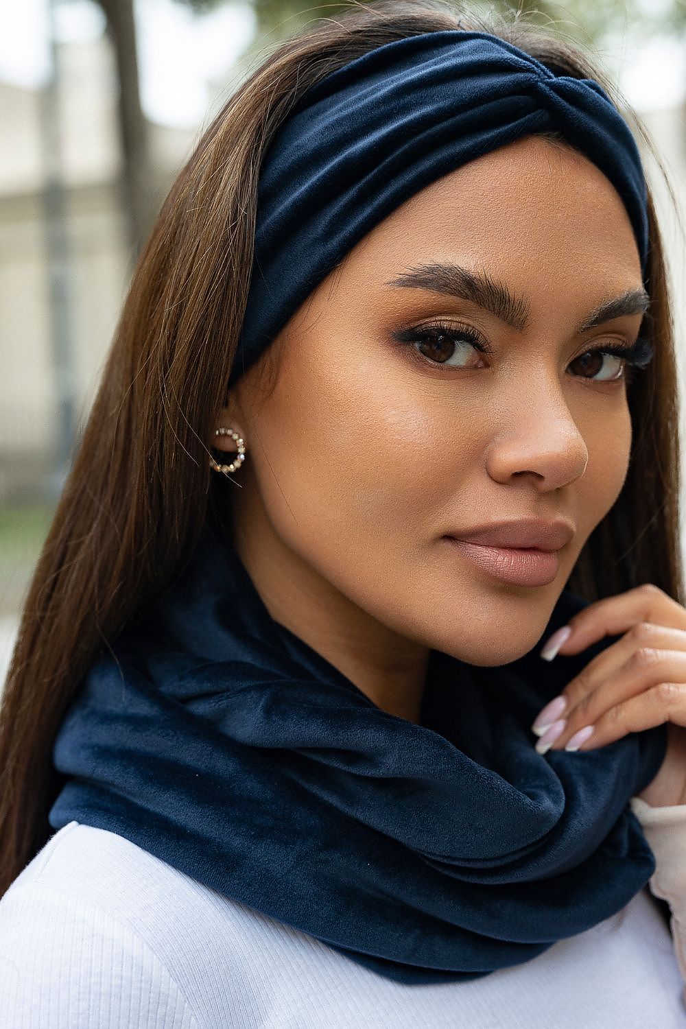 A unique headband and chimney set available in a wide range of colors. Everyone will choose something for themselves. The set without patterns with a universal cut will fit into most autumn and winter outfits. Made of high-quality soft and pleasant velour, which perfectly adapts to the circumference of the head. On the front of the headband decorative interlacing with a knot. Ideally suited as a gift for a loved one. This set is a guarantee of the highest quality at a very attractive price. Set of headband and chimney sweater designed and sewn in Poland.