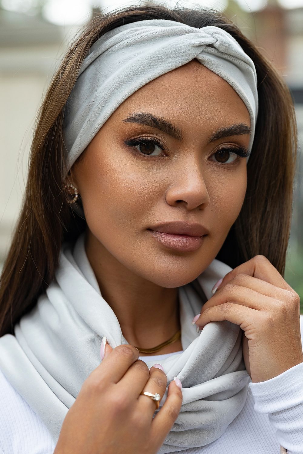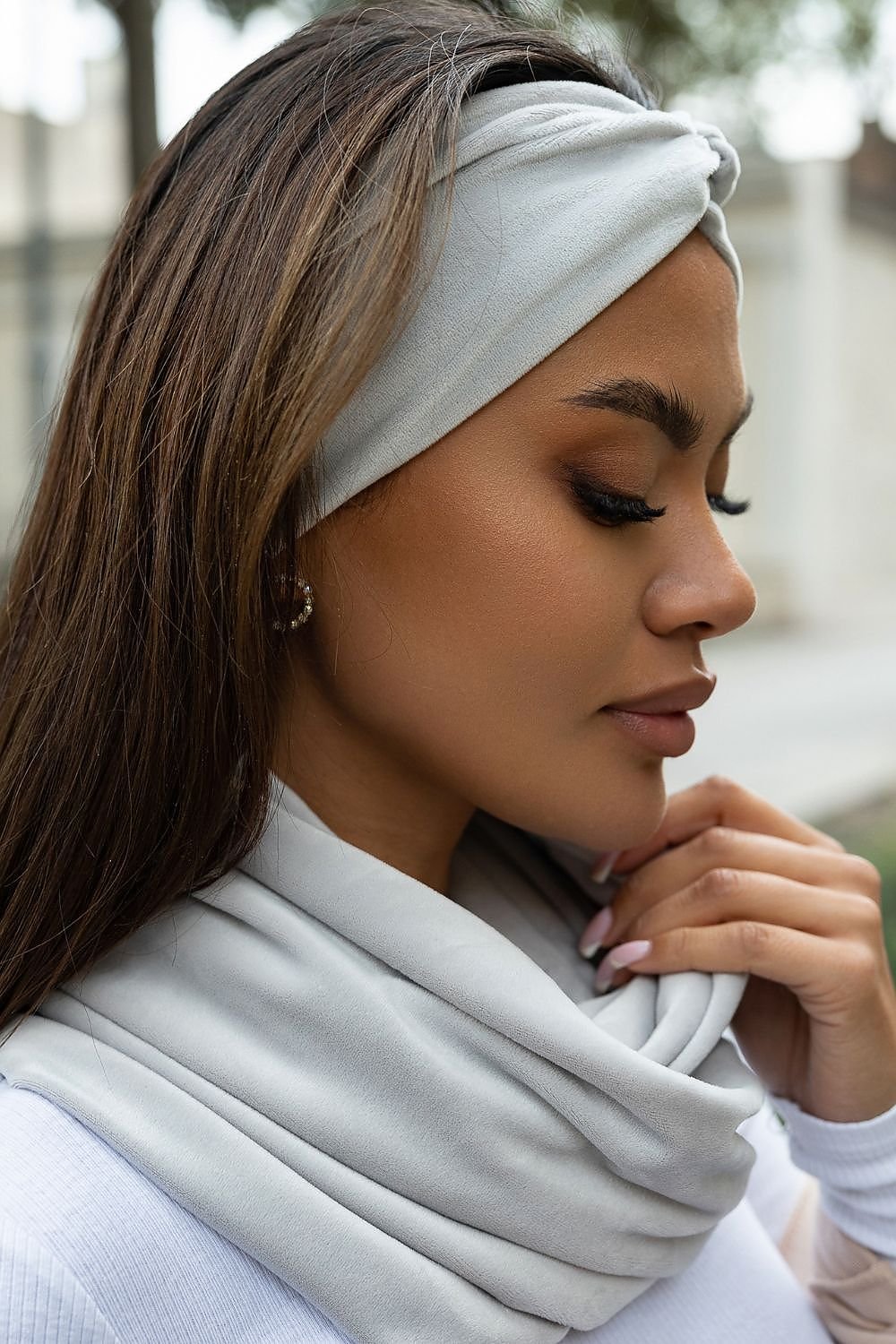 A unique headband and chimney set available in a wide range of colors. Everyone will choose something for themselves. The set without patterns with a universal cut will fit into most autumn and winter outfits. Made of high-quality soft and pleasant velour, which perfectly adapts to the circumference of the head. On the front of the headband decorative interlacing with a knot. Ideally suited as a gift for a loved one. This set is a guarantee of the highest quality at a very attractive price. Set of headband and chimney sweater designed and sewn in Poland.