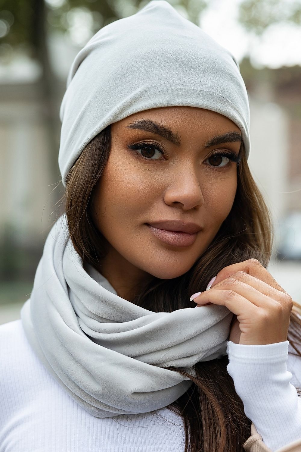 A unique set of cap and chimney available in a wide range of colors. Everyone will choose something for themselves. The set without patterns with a universal cut will fit into most autumn-winter outfits. Made of high quality soft and pleasant velour. Ideally suited for a gift for a loved one. This set is a guarantee of the highest quality at a very attractive price. The set of hat and snood designed and sewn in Poland.