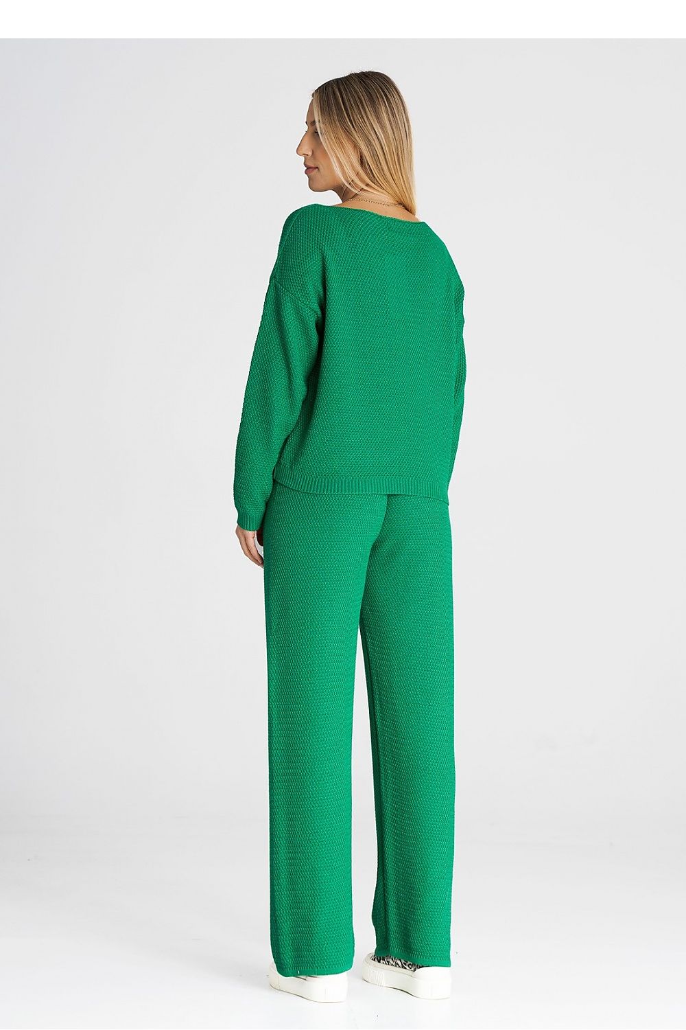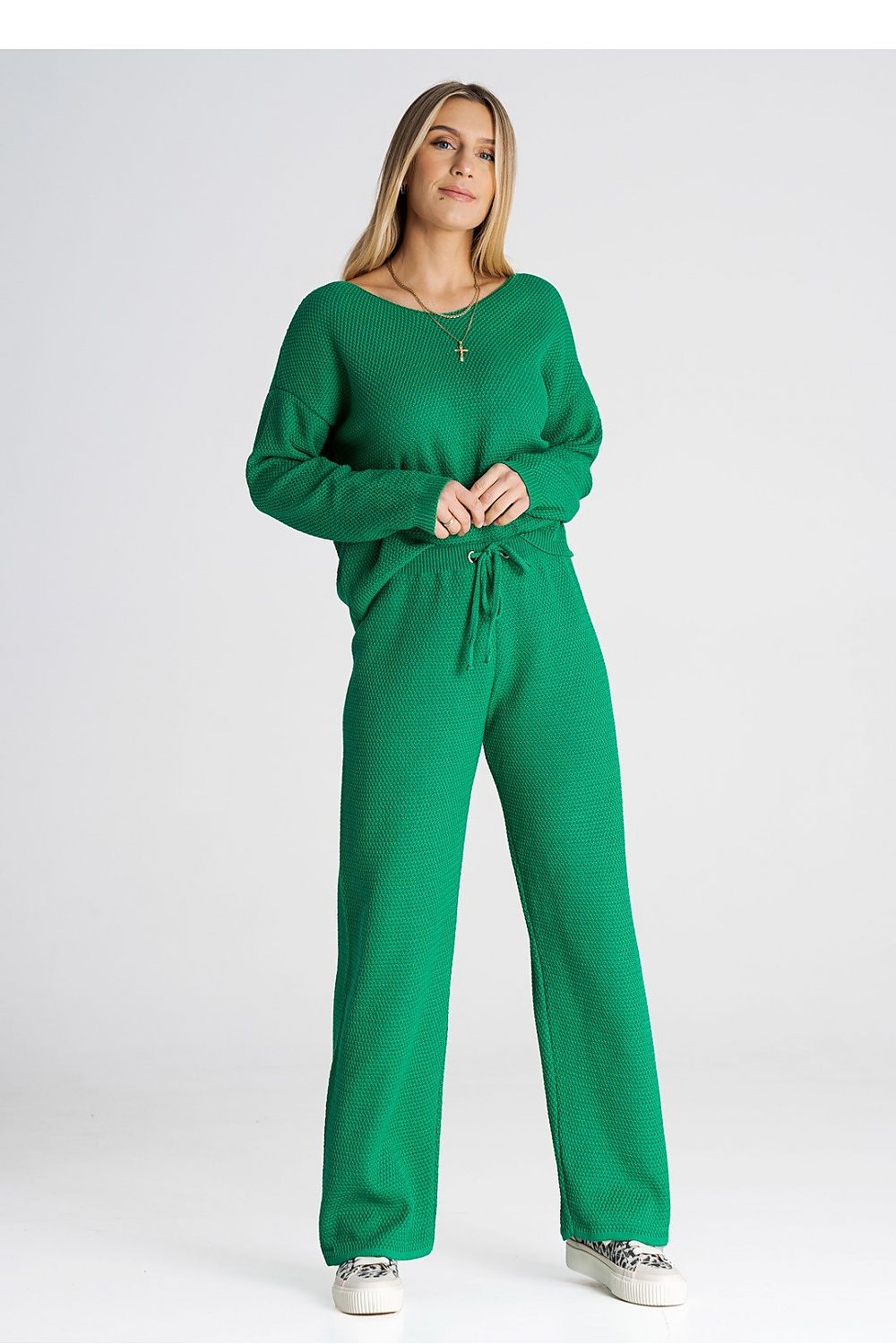 A set consisting of a long-sleeved sweatshirt and long loose pants tied at the waist.