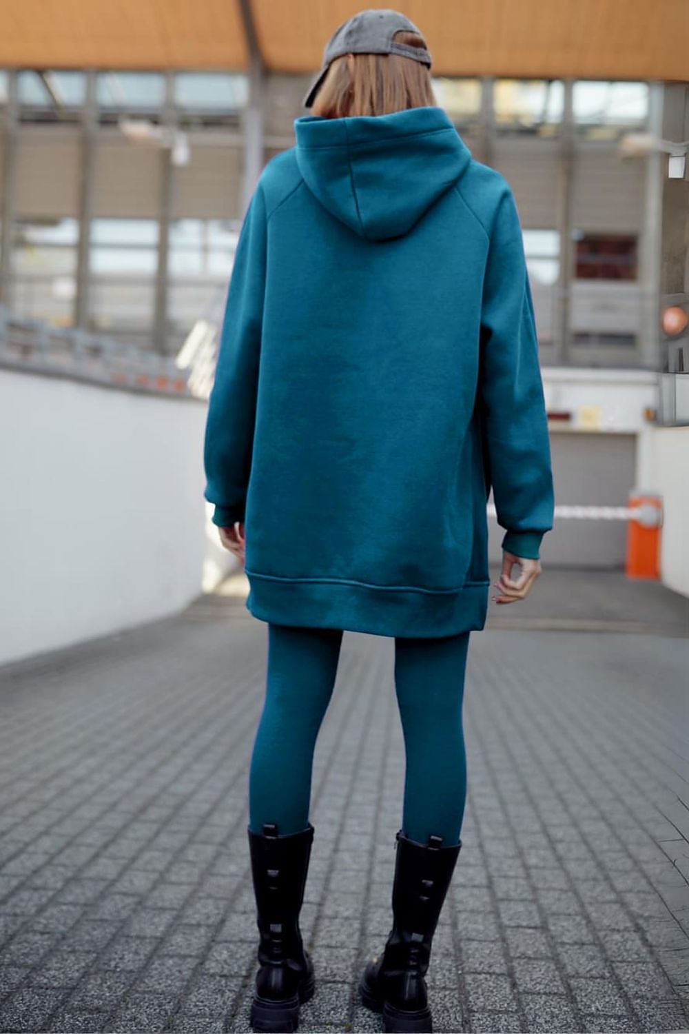The turquoise set, an oversized hoodie and striped leggings, is a great cotton set, a total must have! The gentle warming inside the sweatshirt will be perfect for walks or a lazy evening at home. There is a kangaroo type pocket on the front. Feel the relaxed comfort in feisty leggings with elastic waistband. Delight with complete freedom.