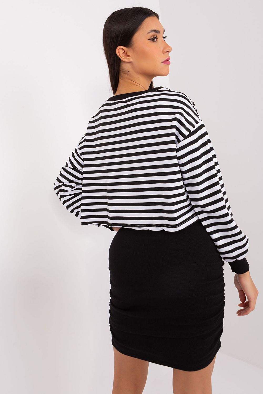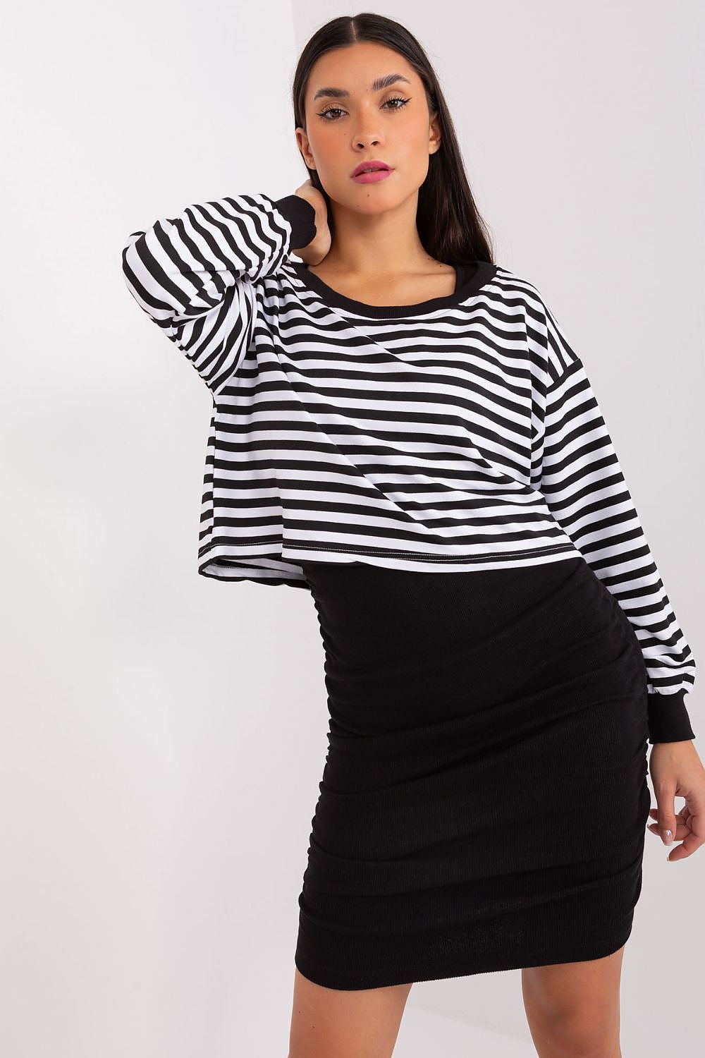 The blouse and dress set is a perfect combination of lightness and style, ideal for everyday situations where you want to feel comfortable while looking graceful. The strapless dress made of ribbed material adds originality to the set, maintaining a casual character. The striped blouse is a distinctive element of the set, giving it a lightweight and pleasant, everyday character. Made mainly of cotton, it provides excellent wearing comfort, while remaining durable and skin-friendly. The strapless dress, kept in a mini style, features a round neckline and pleats on the sides, giving it a lightweight feel and adding dynamic movement. The ribbed material makes the dress look striking and eye-catching. The long-sleeved blouse is a practical solution that allows you to wear the set in different weather conditions. The creases on the sides of the dress add subtle details, while emphasizing the silhouette. This set perfectly combines the comfort of a striped blouse with the originality of a strapless dress made of ribbed material. The casual style makes it the perfect outfit for everyday outings, shopping or meetings with friends, while keeping it light and free to move.