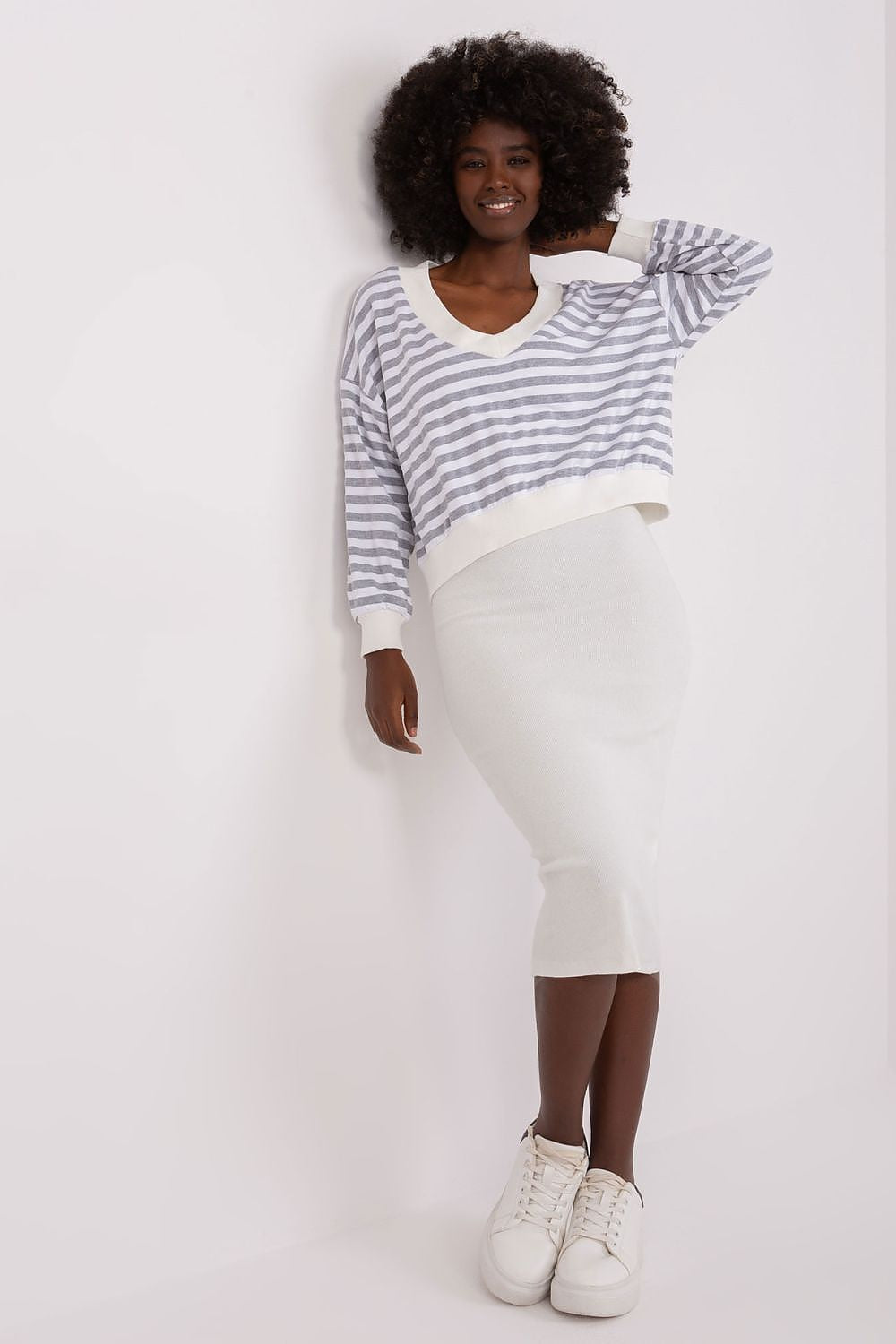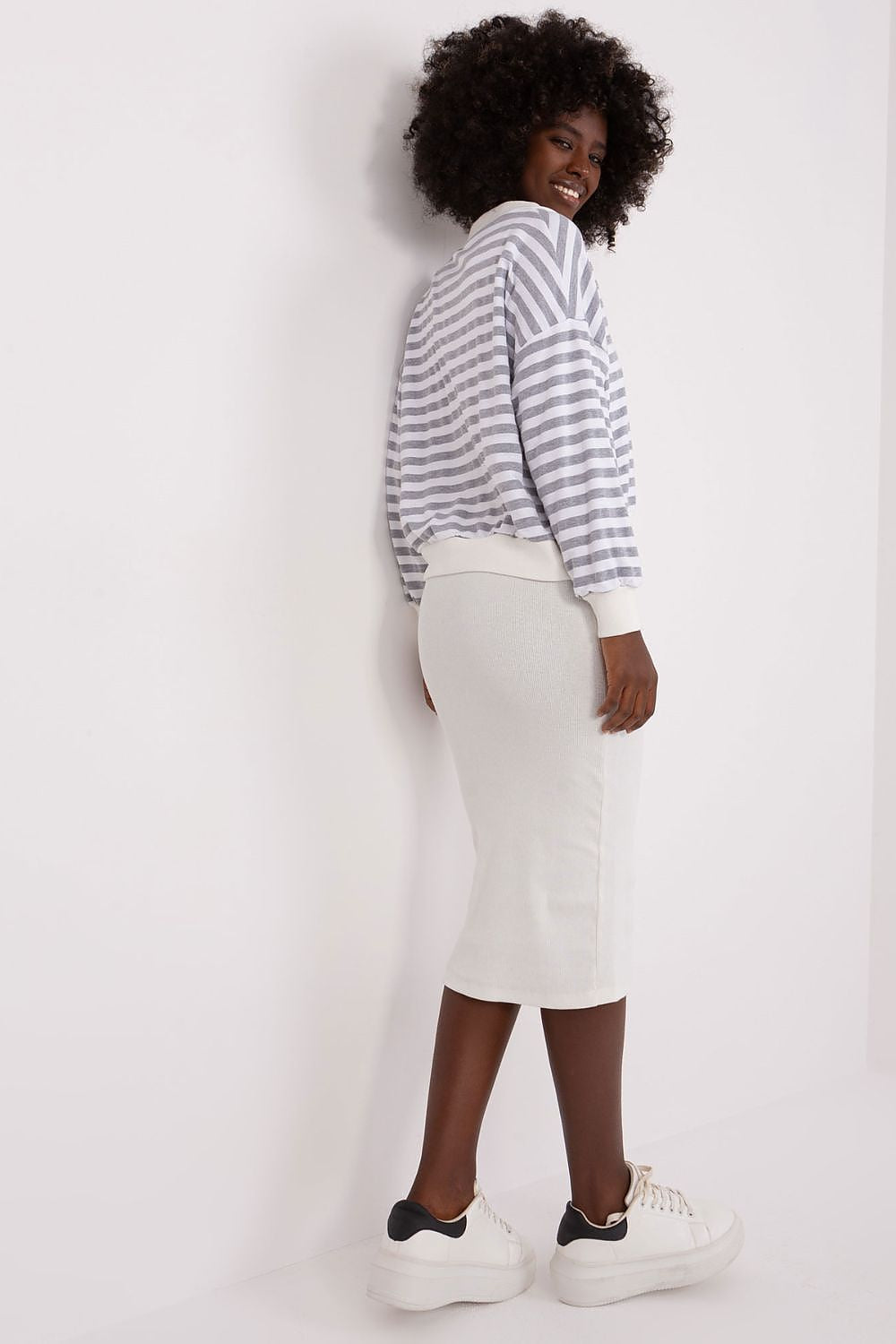 The blouse and dress set is a perfect combination of comfort and style, ideal for everyday situations where you want to stay casual and look fashionable at the same time. The dress made of ribbed material adds originality to the set, while the striped blouse gives it lightness and freshness. The dominant material in the set is comfortable and soft cotton, which guarantees pleasure in wearing and adequate breathability. Both the dress and the blouse are kept in a plain pattern, which makes them versatile and easy to combine with other items of clothing. The midi length strapless dress gives the set an elegant look, while remaining a comfortable choice for everyday wear. The heart neckline and round neckline at the dress add subtle femininity, creating a harmonious and balanced composition. A long-sleeve blouse with a heart neckline is a practical addition to the set, allowing you to enjoy casual style on both warmer and cooler days. These elements form a harmonious duo, while maintaining freedom of movement and a pleasant, everyday character. This complete set perfectly combines comfort with fashionable design, making it an ideal choice for everyday meetings, shopping or relaxing walks. The casual style and diverse elements of the set make it versatile, allowing you to adapt to different circumstances.
