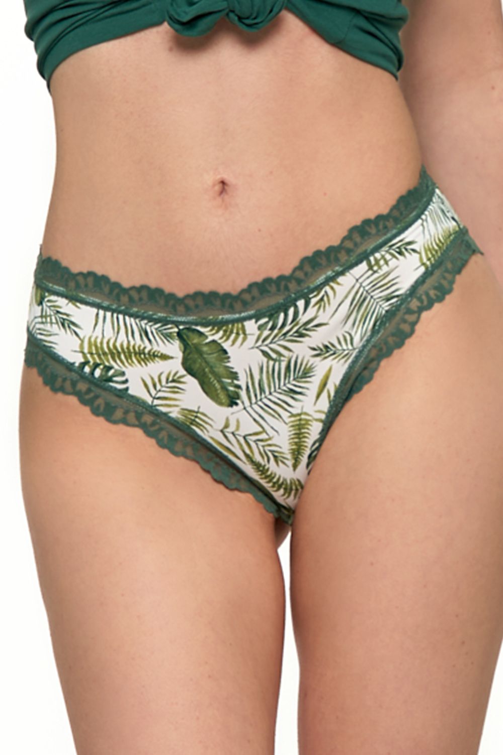 We present to you elegant women's panties with lace trim in a pack of 2 pieces from the LIMITED EDITION collection, packed in a beautiful decorative box. This unusual set consists of two different variants of panties, one piece of which features a delicate floral pattern of monstera and ferns, while the other piece is unpatterned, single-color. This is an absolute treat for lovers of exclusive and unique products. Made of high-quality materials, these panties provide a perfect fit and comfort all day long. Their lace trim gives them a subtle, feminine touch that emphasizes their elegance. The panties also feature an elastic waistband that ensures a perfect fit for your figure. This is a limited edition, which means that each set is unique and unrepeatable. Your lingerie collection will gain uniqueness with this exclusive edition of panties. In addition, each pair of panties is carefully packaged in a decorative box, which adds to the charm and makes them the perfect gift for a loved one or yourself. This is the perfect way to feel luxurious and highlight your femininity. Let these lace trimmed 2-pack panties, packaged in a decorative box, become an indispensable part of your closet and emphasize your uniqueness every day.