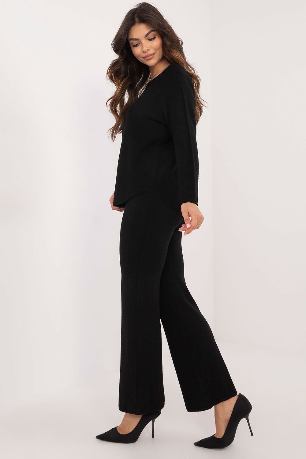 Casual sweater set, consisting of a comfortable sweater and pants, ideal for everyday styling. Made from a soft blend of viscose, polyester and nylon, it provides comfort and a pleasure to wear. The smooth texture of the material adds a modern, minimalist look to the set. The sweater has long sleeves and a round neckline for a classic, versatile fit. The wide-legged, high-waisted pants perfectly shape the figure, and the lack of pockets gives them a clean, elegant line. This is a stylish and comfortable everyday set, perfect for a walk, work or relaxing at home.