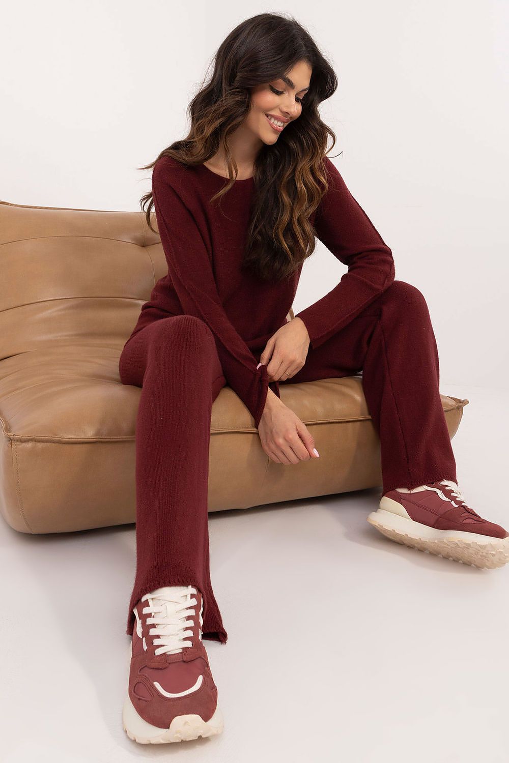 Casual sweater set, consisting of a comfortable sweater and pants, ideal for everyday styling. Made from a soft blend of viscose, polyester and nylon, it provides comfort and a pleasure to wear. The smooth texture of the material adds a modern, minimalist look to the set. The sweater has long sleeves and a round neckline for a classic, versatile fit. The wide-legged, high-waisted pants perfectly shape the figure, and the lack of pockets gives them a clean, elegant line. This is a stylish and comfortable everyday set, perfect for a walk, work or relaxing at home.