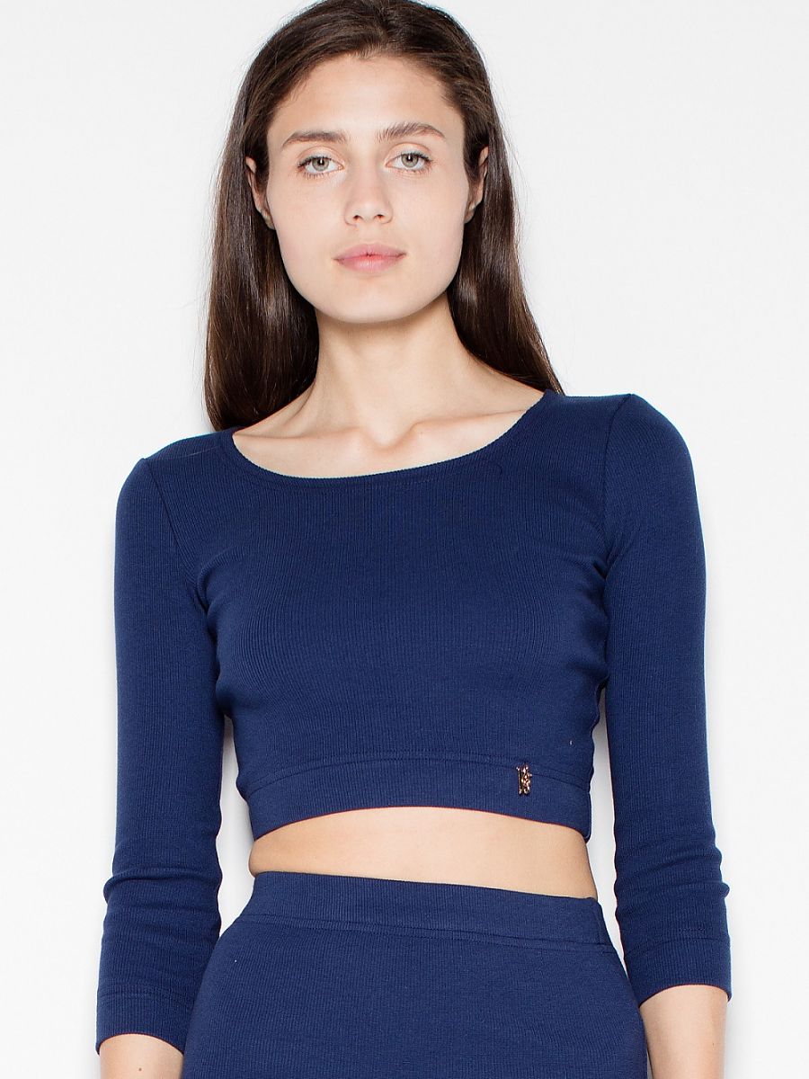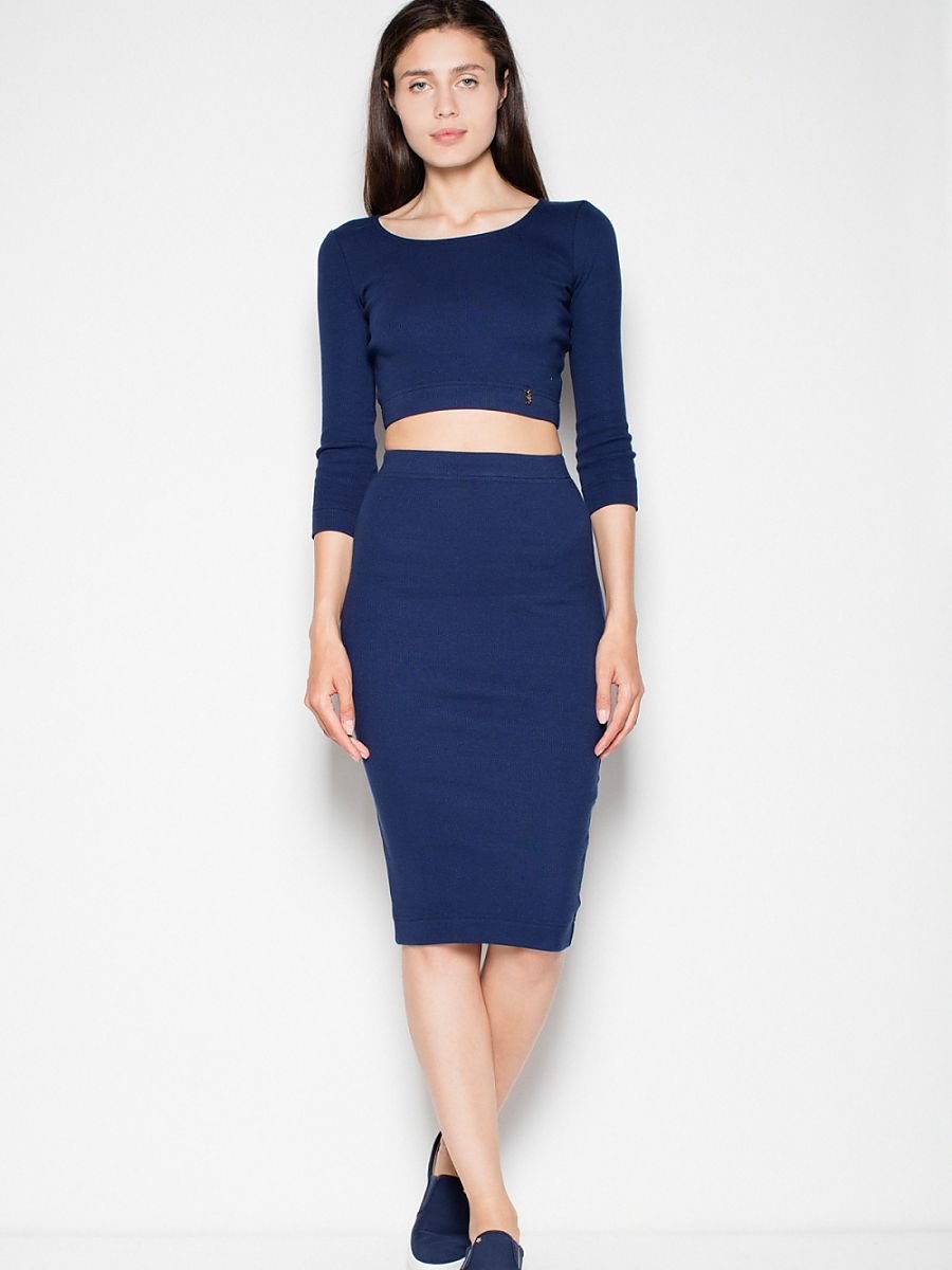 Cotton set. Long sleeve crop top and classic cut pencil skirt.