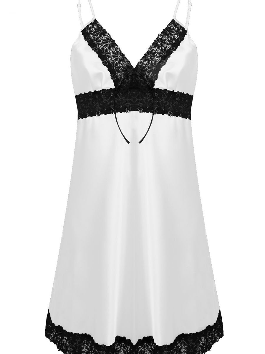 Stylish strapless nightgown made of satin. Elegant and feminine. Lace trims are a real treat here, as they decoratively flow both at the neckline, under the bust, and in the thigh line.