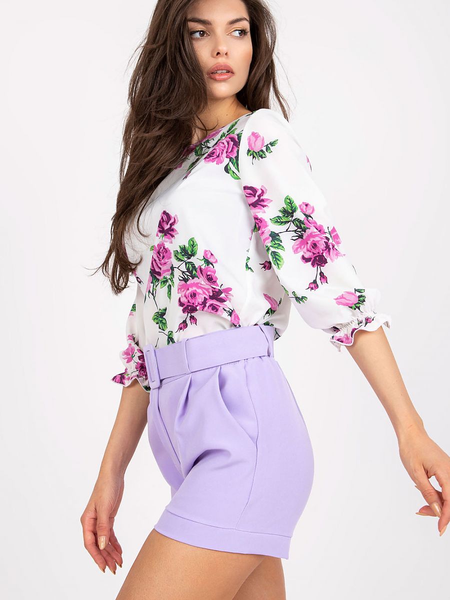 Elegant women's shorts with a zip and button closure. Slip-on pockets on the sides. Matching belt in the same color. Perfect for many occasions.