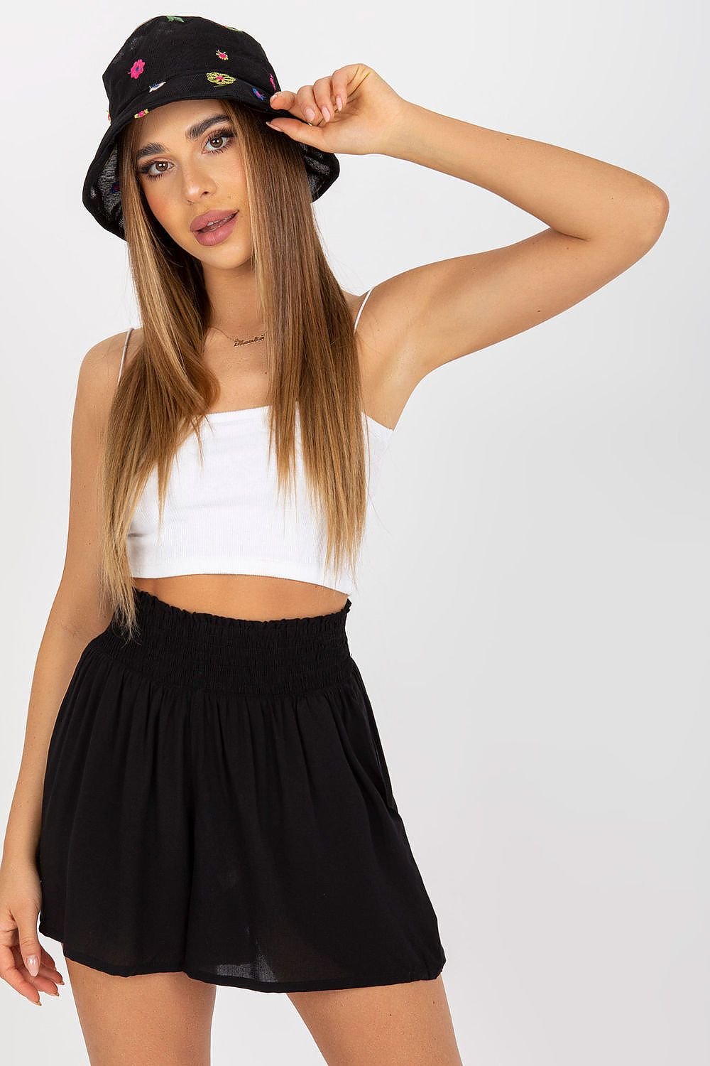 Women's shorts with a loose cut, with a high waist. Shorts with wide elastic crease, without pockets.
