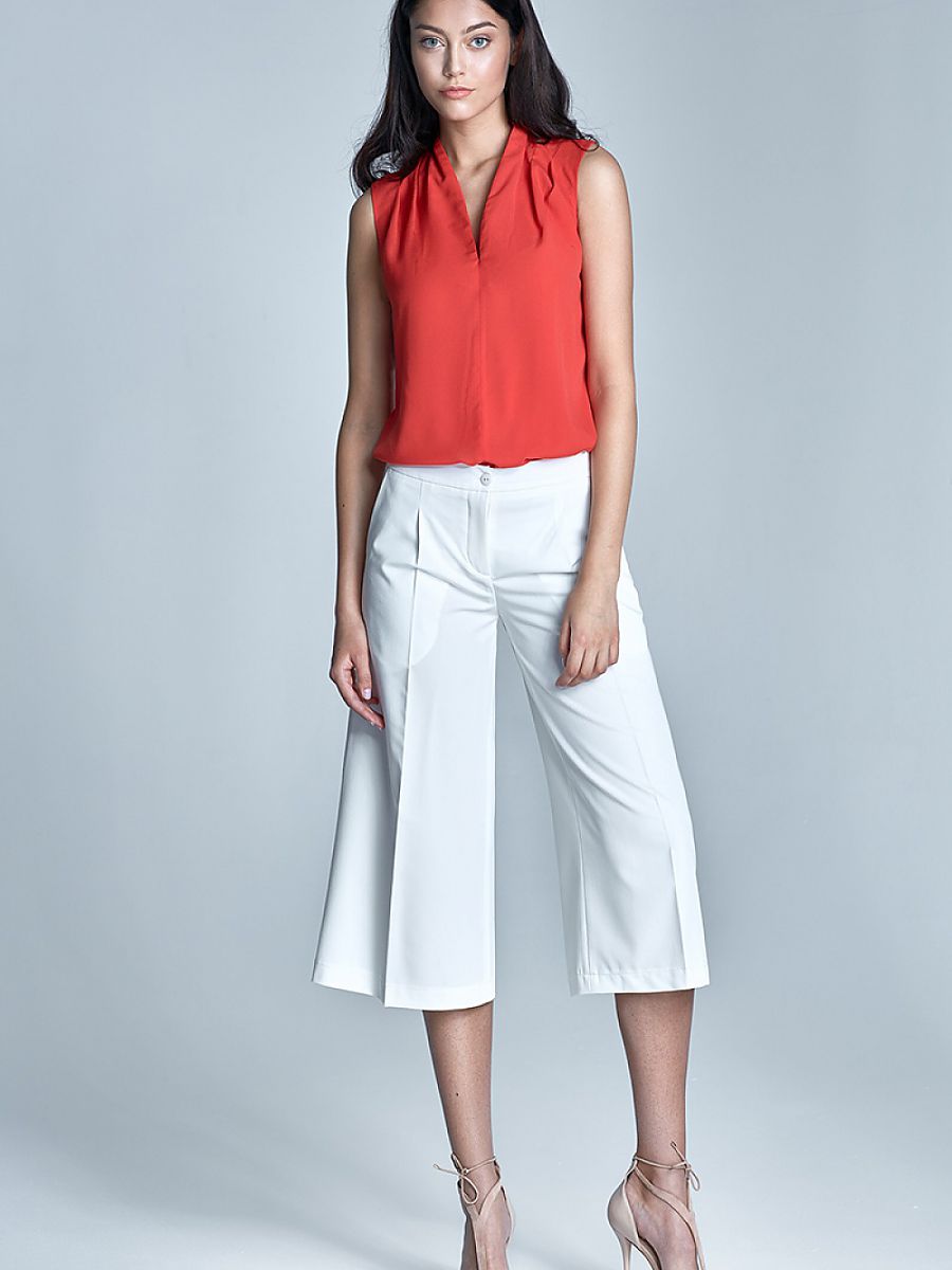 Wide women's trousers behind the knee a real hit of the season. Trousers with zipper and button. Slide pockets on the sides. Chamfered legs.
