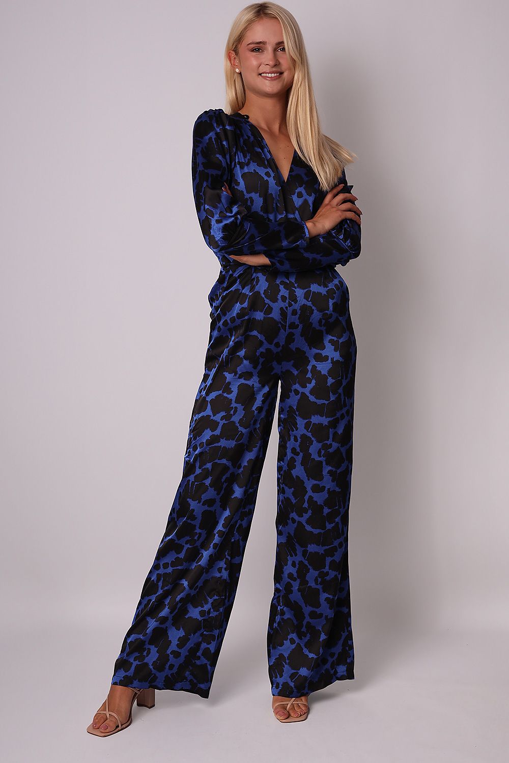 Make a statement in our cobalt and black print envelope jumpsuit. This gorgeous print is perfect for your new season closet, encompassing long sleeves with wide cuffs, an envelope top, figure-enhancing wide legs and a back zipper. Just pair it with stilettos and a clutch bag!