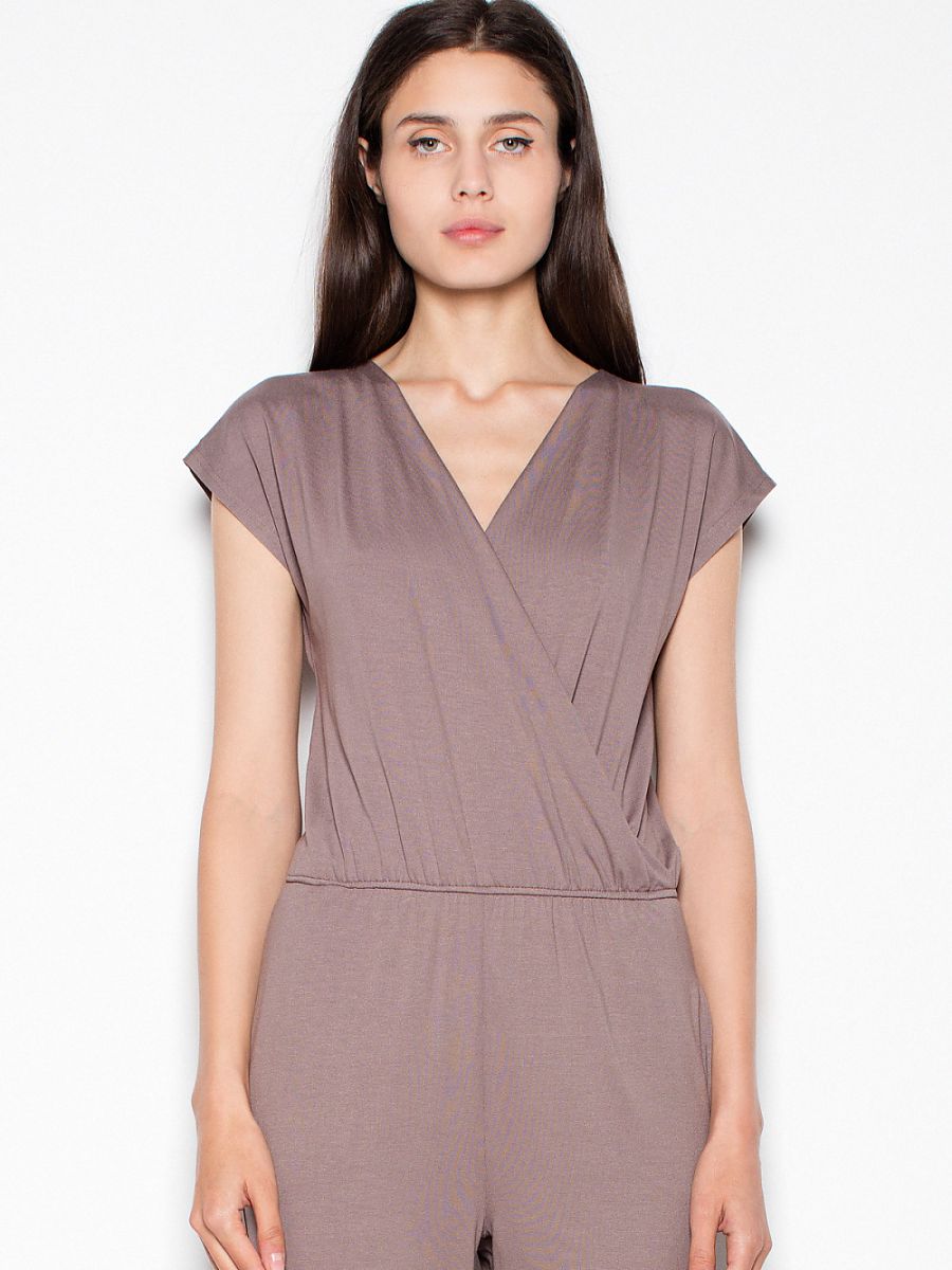 Sporty, short-sleeved overalls with long, tapered legs. The model finished with a spectacular envelope neckline and a drawstring waist emphasizing the silhouette.
