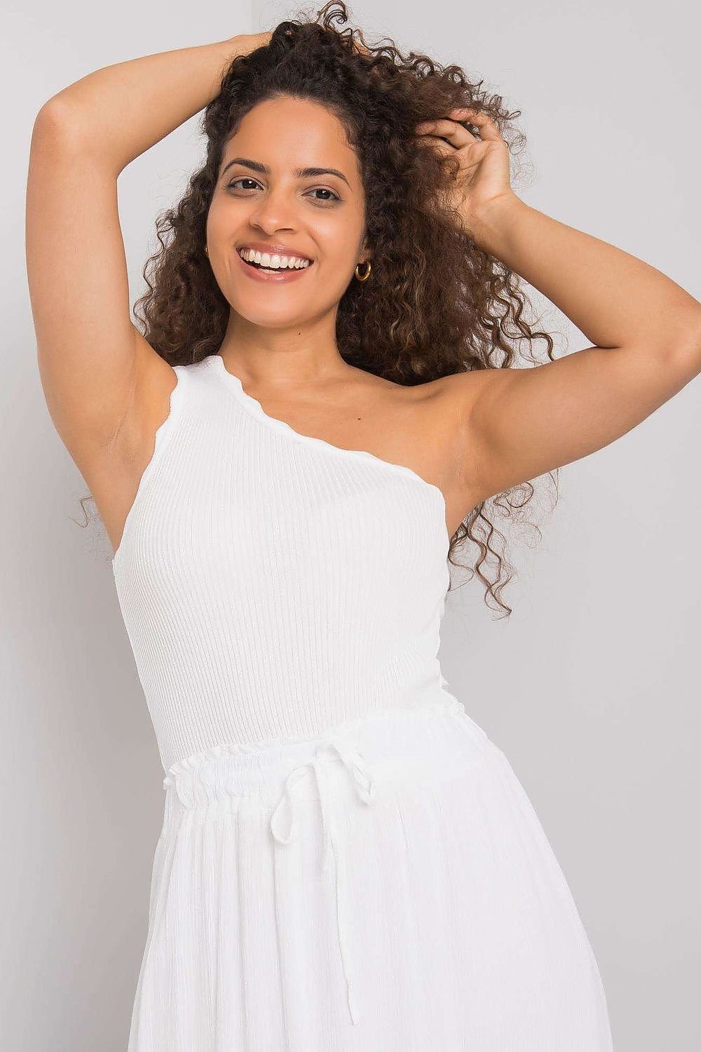 This short and stylish top will perfectly complement your everyday look! Made of ribbed acrylic material, it has perfect proportions to add to your character. The pleasant and stretchy material takes care of your comfortable feeling while wearing it. The top has one shoulder, which adds a subtle charm to it.