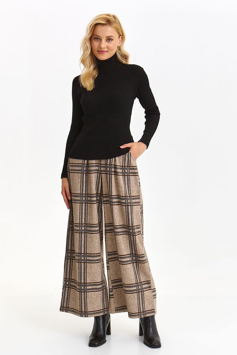 Overflowing with comfort and convenience during use, this women's sweater has a simple fitted cut that clings to a woman's figure and shows off her slimness. It has straight long sleeves finished with a ribbed hem and an impressive and thick turtleneck collar appreciated for the warmth offered during colder days. It was made of a pleasant to the touch and soft knit fabric with a predominance of viscose, and the charm is added by the stripes on the whole. It looks nice when paired with classic long pants, as well as with an interesting skirt. The sweater is available in black.