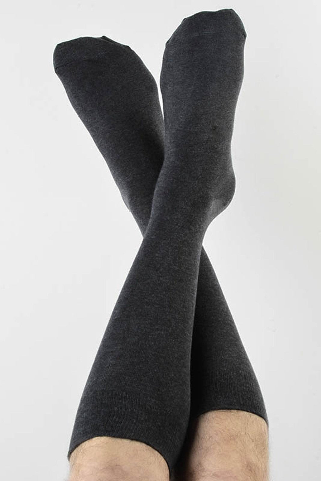 Hochwertig anthrazitfarbene Strümpfe in klassischer Strumpfhöhe aus 98% Bio-Baumwolle (kbA) und 2% Elasthan. Der bequeme Tragekomfort aus weichem Baumwolljersey wird abgerundet mit dem Elasthanfaden-Komfortbund.