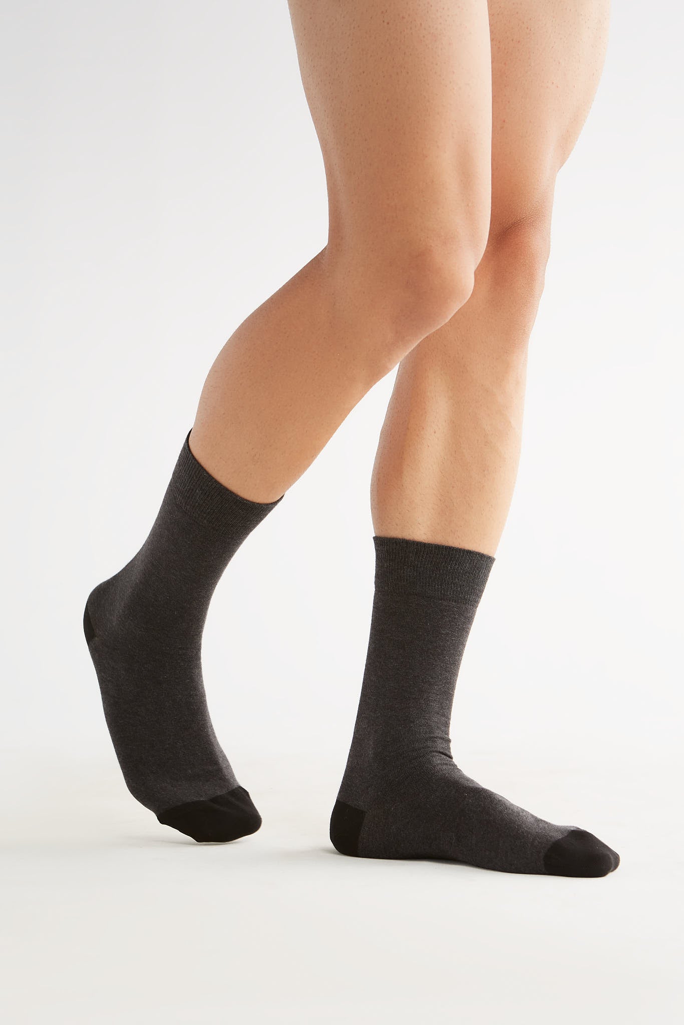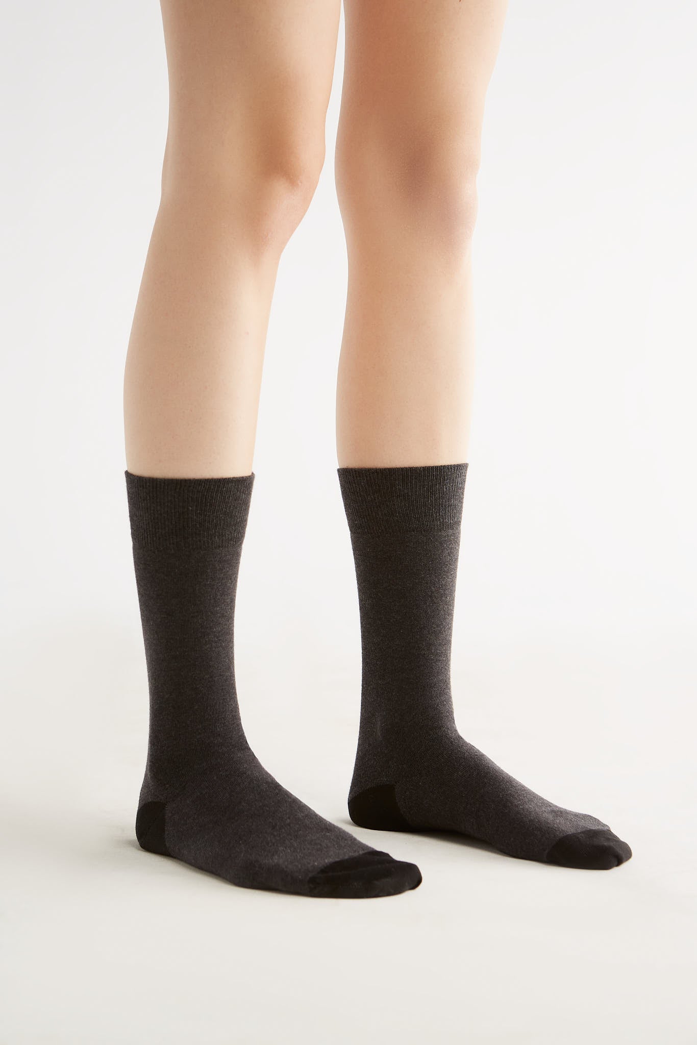 Hochwertig anthrazit-farbene Strümpfe in klassischer Strumpfhöhe aus 98% Bio-Baumwolle (kbA) und 2% Elasthan. Die Zehenkuppen, sowie Fersen sind Schwarz. Der bequeme Tragekomfort aus weichem Baumwolljersey wird abgerundet mit dem Elasthanfaden-Komfortbund, der ebenfalls schwarz ist.