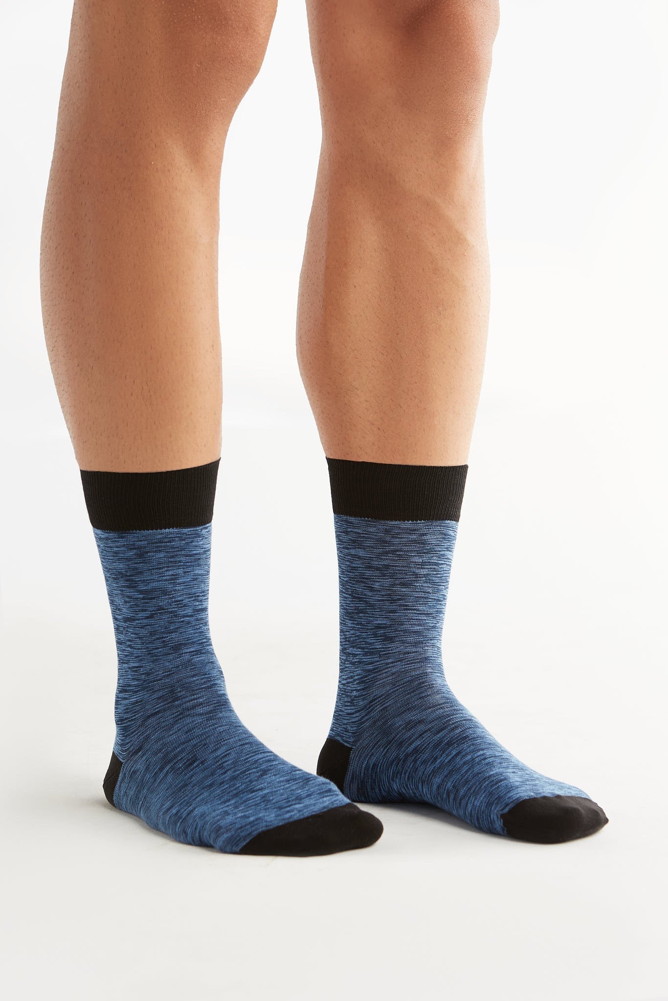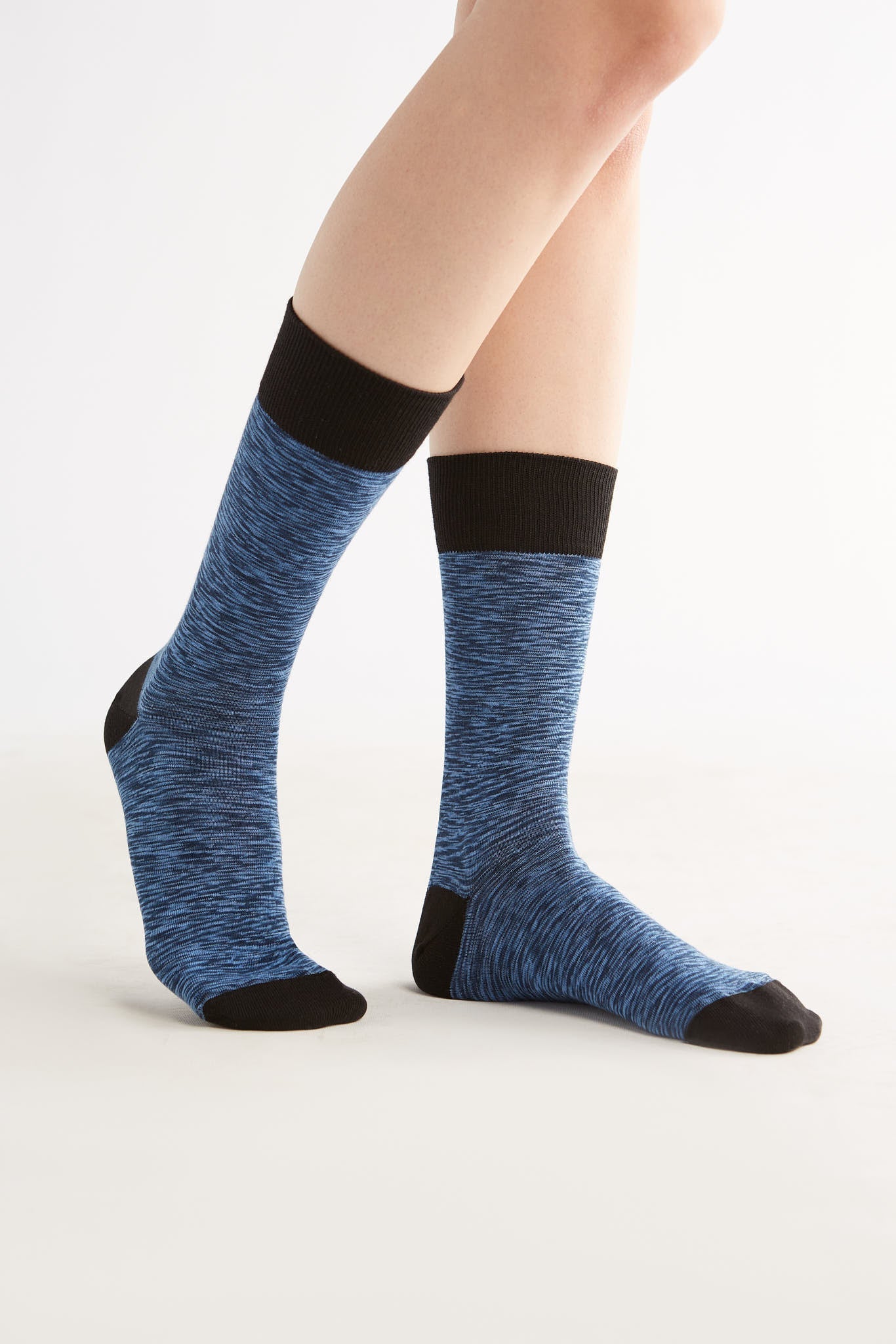 Hochwertig spaceultramarine Strümpfe in klassischer Strumpfhöhe aus 98% Bio-Baumwolle (kbA) und 2% Elasthan. Die Zehenkuppen, Fersen sowie der Bund sind in einem Schwarz. Der bequeme Tragekomfort aus weichem Baumwolljersey wird abgerundet mit dem Elasthanfaden-Komfortbund. Nur im 6er Pack erhältlich.